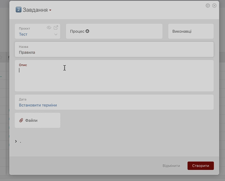 Другий варіант — як раніше: користувач натискає «Завдання», обирає процес і назву.