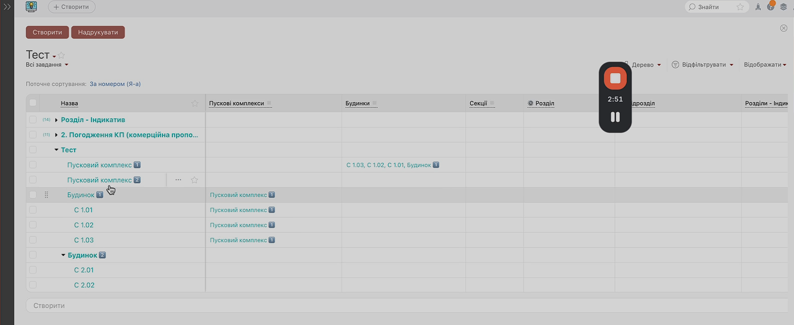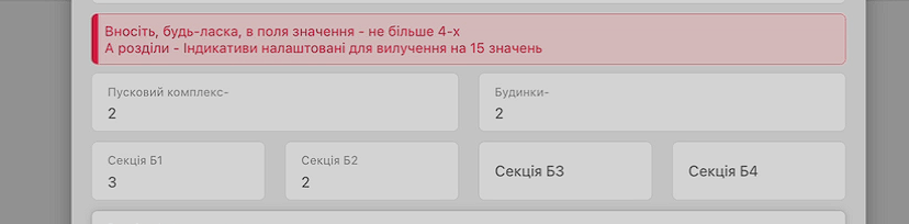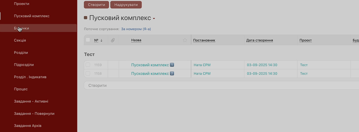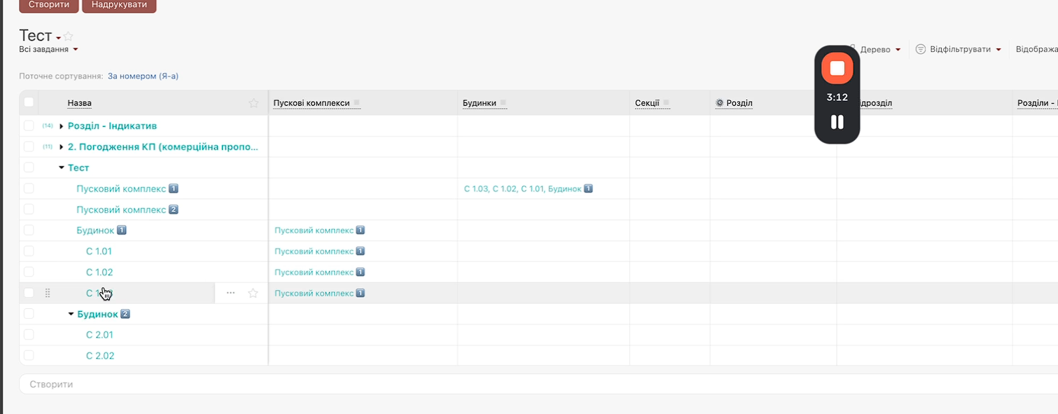 Рішення: у CRM реалізовано окремий блок, де можна чітко відстежувати всі пускові комплекси, їхній склад та статуси, будинки, секції та розділи.