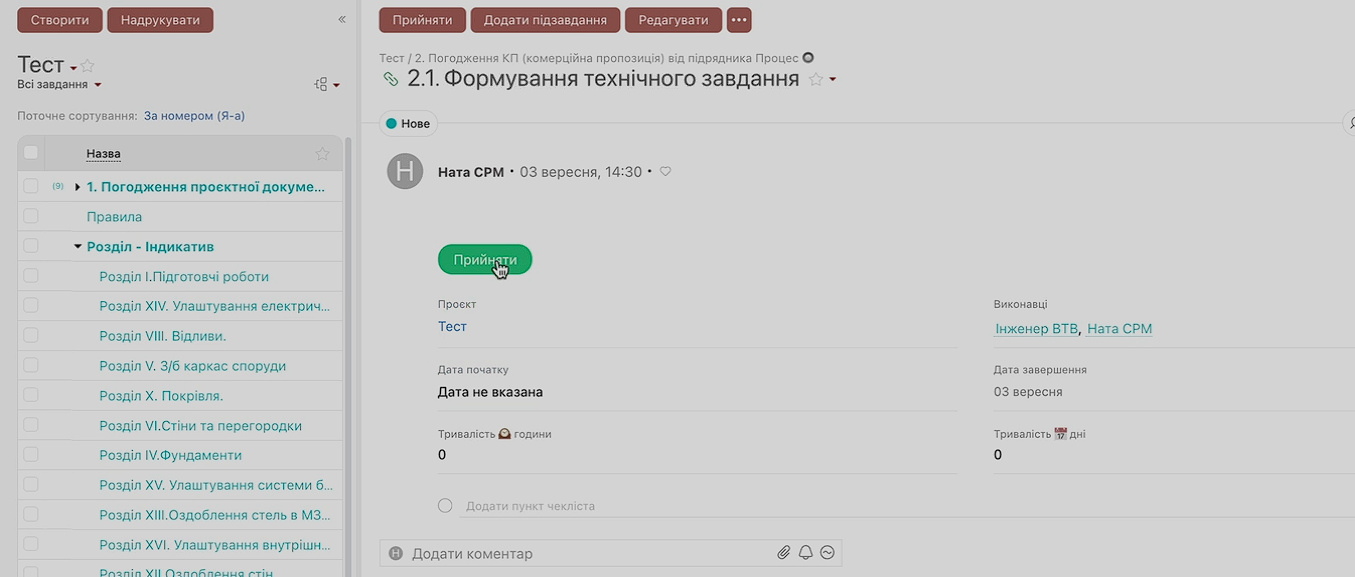 Результат: CRM фіксує дату й час прийняття, і з цього моменту завдання вважається «в роботі».