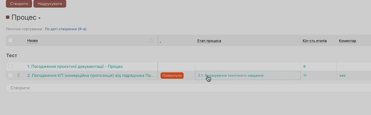Коли запускається новий процес, система одразу створює перше завдання. Це економить час і усуває ризик, що хтось забуде його додати.