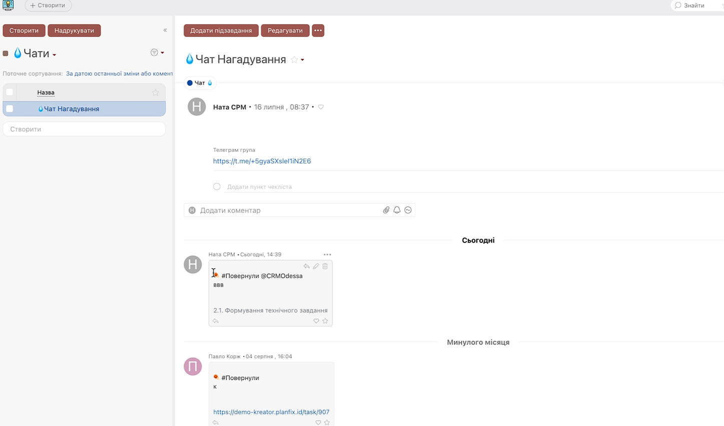 Клієнт працює в робочих чатах Telegram, тому ми налаштували інтеграцію CRM із месенджером.