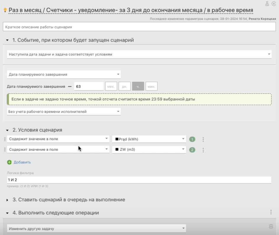 Для удобства сбора данных реализованы автоматические напоминания арендаторам о необходимости передать показатели. Сообщения отправляются по определённому сценарию: за несколько дней до конца месяца, в день завершения периода и в начале следующего месяца. Передача показателей происходит через Telegram-бота, который принимает данные только в установленном формате и по кодовым словам. Это минимизирует ошибки ввода и снимает нагрузку с менеджеров.