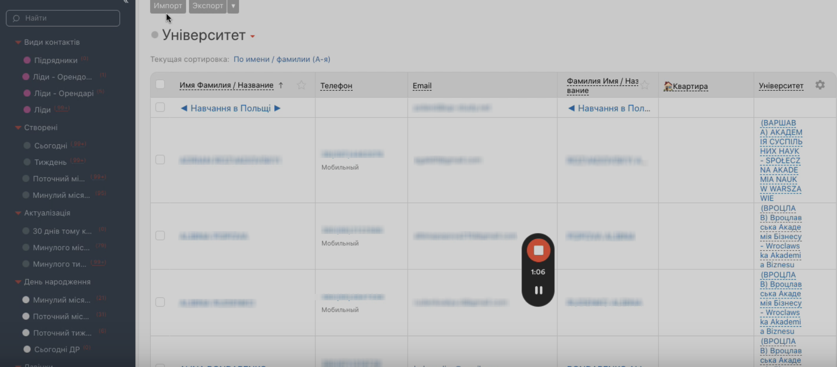 На первом этапе архитектура CRM строилась с учётом дальнейшего подключения квартир, комнат и финансовых процессов. Все обращения, контакты, задачи и коммуникации должны были бесшовно связываться с конкретными объектами аренды на следующих этапах внедрения.