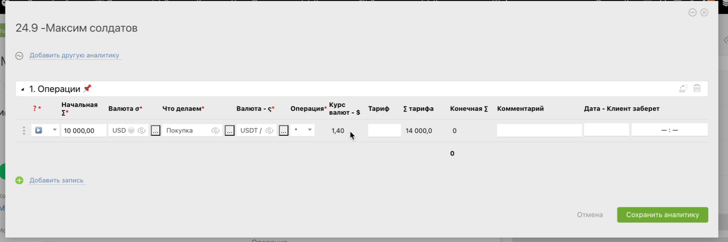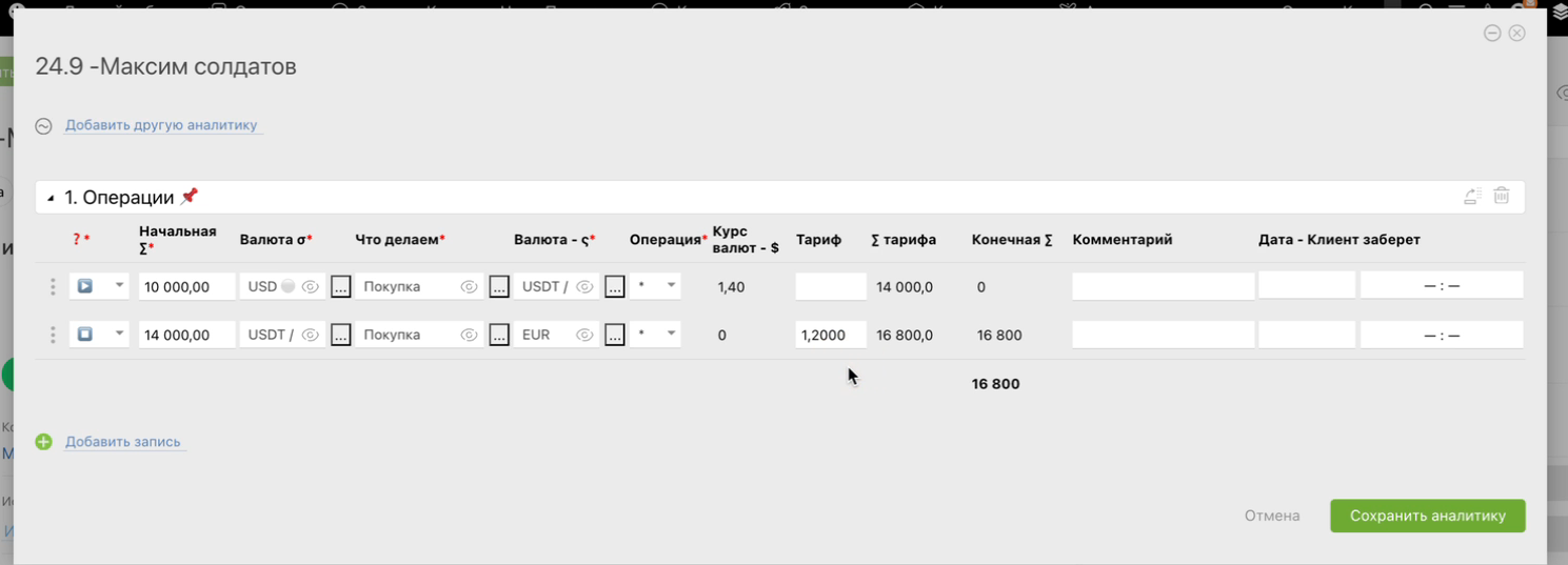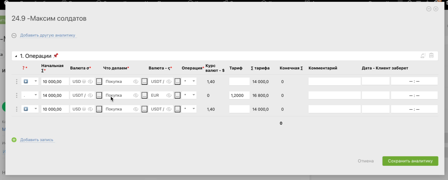 Это позволяет сократить количество ручных записей и видеть результат цепочки обменов в едином поле «Аналитика».