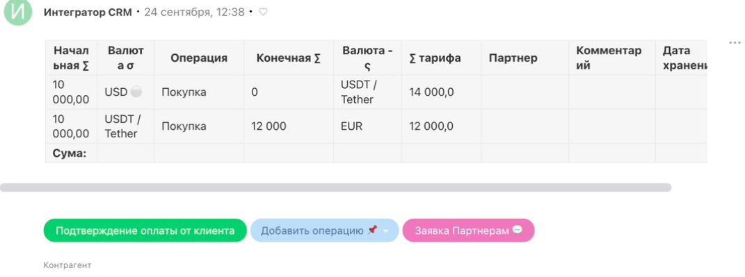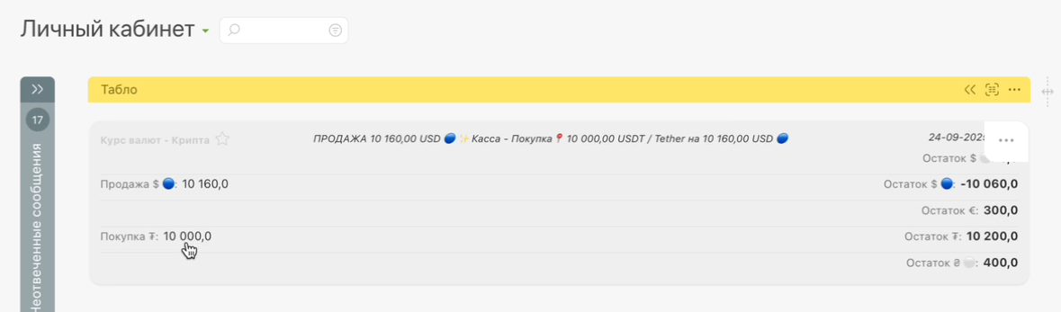 Благодаря аналитике в реальном времени руководство видит точные остатки, доходность и движение средств по каждой валюте. Менеджеры работают быстрее, имеют чёткую структуру действий и полную историю взаимодействий с клиентами и партнёрами.