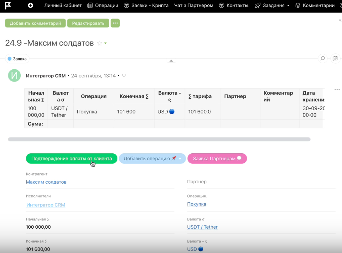 Компания активно работала с денежными операциями, но все процессы: заявки, учет клиентов, движение средств — велись вручную в разных файлах и мессенджерах.