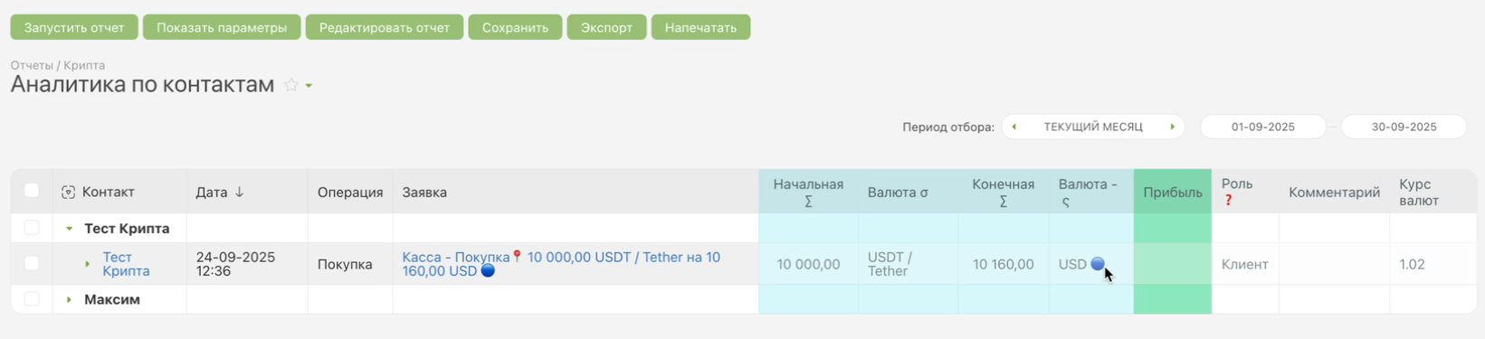 3. Аналитика по контактам показывает, какие клиенты или партнёры приносят прибыль, в какой валюте работают и какие сделки были за месяц.