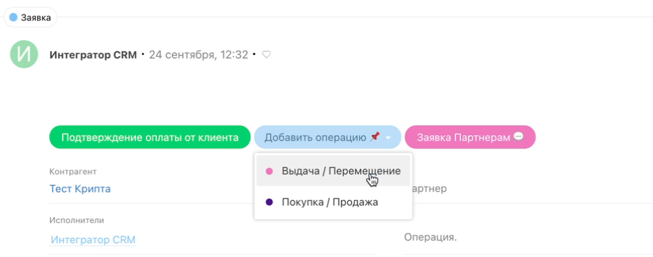 Был разработан удобный механизм создания заявки непосредственно из CRM: